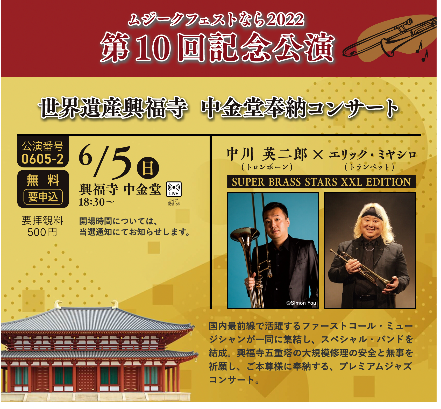 6/5ムジークフェストなら2022 第10回記念公演 世界遺産興福寺 中金堂奉納コンサート配信